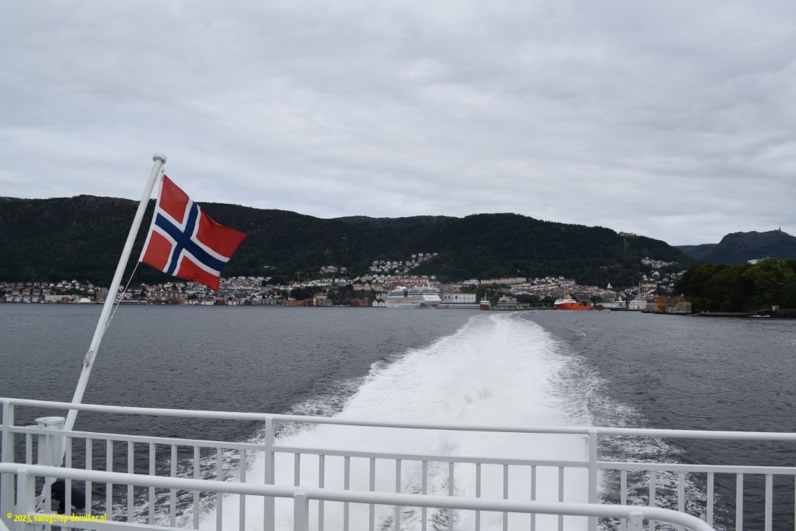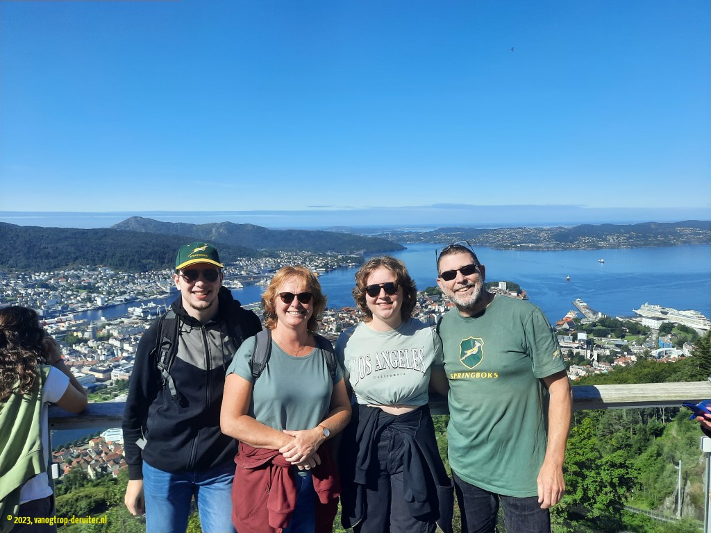 First tourist stop was the Flรธibanen funicular, ascending to the wonderful viewing point at Flรธyen and being rewarded with a panoramic view across the whole city and beyond. Bathed in sunshine, we revelled in this, as well as in an extended walk to the Skomakerdiket. Returning to the harbour market area our further activities were to walk the length of Nordnes to the viewing point, as well as a ferry crossing to Kleppestรธ and back. We wrapped up with a great pizza dinner at Peppes Pizza before heading back to our overnight stop.