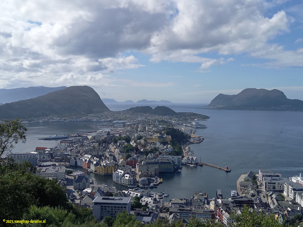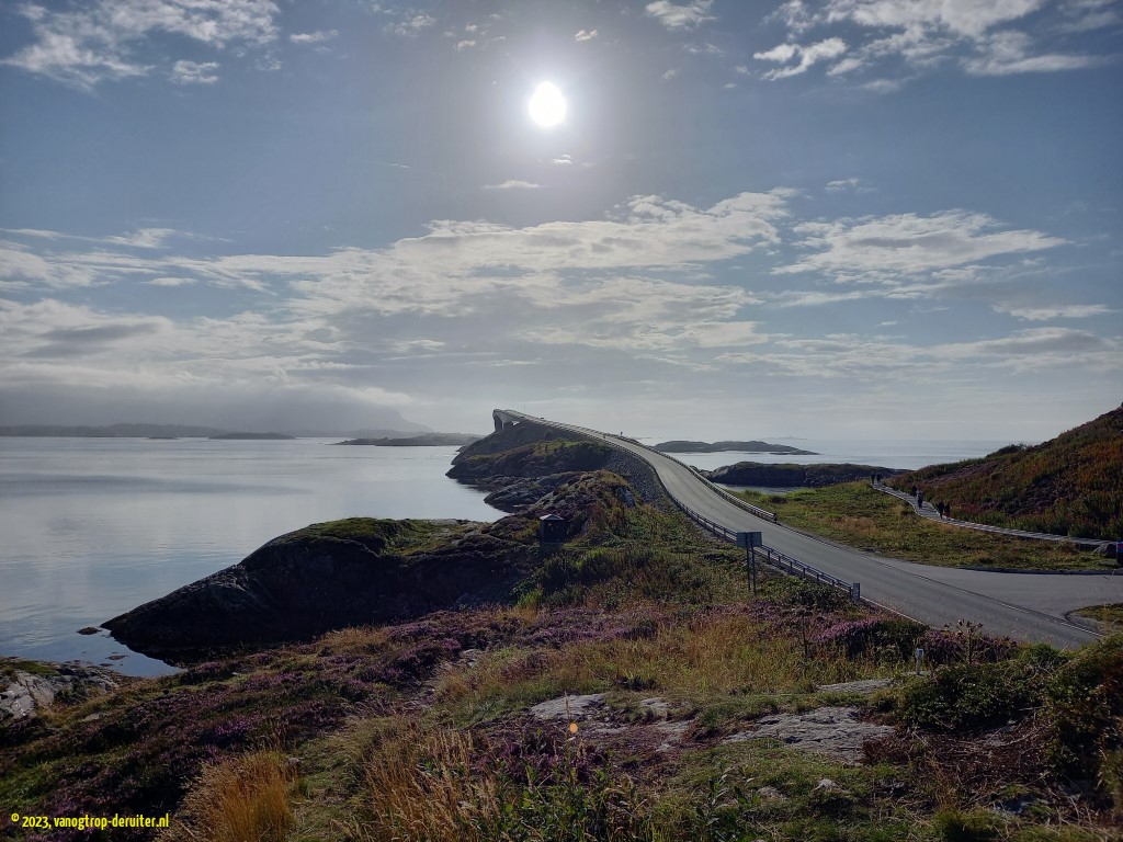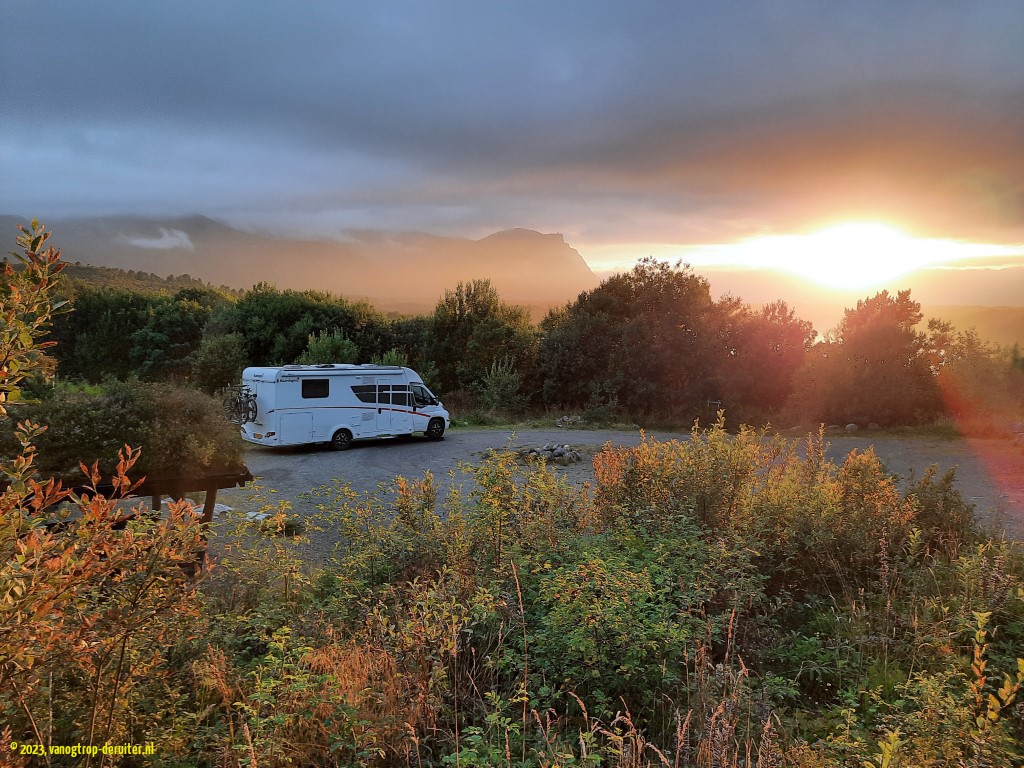 Our last day of northbound journeying involved more wonderful kilometers of fjord-views as well as a couple more ferry crossings. A stop in ร lesund, with a high viewing point at Aksla, provided us (in our opinion) with a better harbour view than we had seen in Bergen. Our final destination for the day was the Atlanterhavsvegen, another tourist route with a drive over 7 bridges between islands; the most dramatic bridge is the Storseisundbrua (featured in the Bond film No Time To Die). Our overnight stop was a jewel, at a picnic stop overlooking the Gaustadvagen, where an abundance of birdlife combined with another artistic sunset to round off a wonderful chapter in the Norwegian adventure … ๐