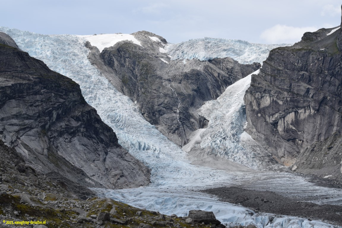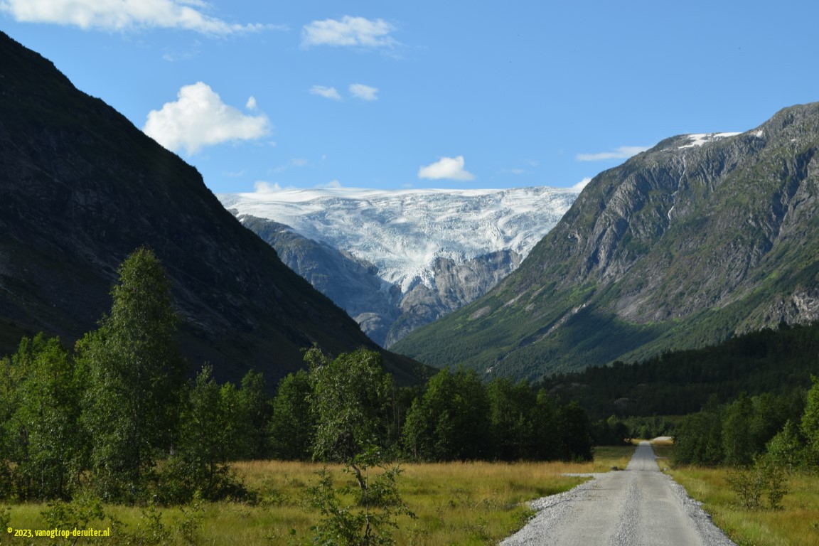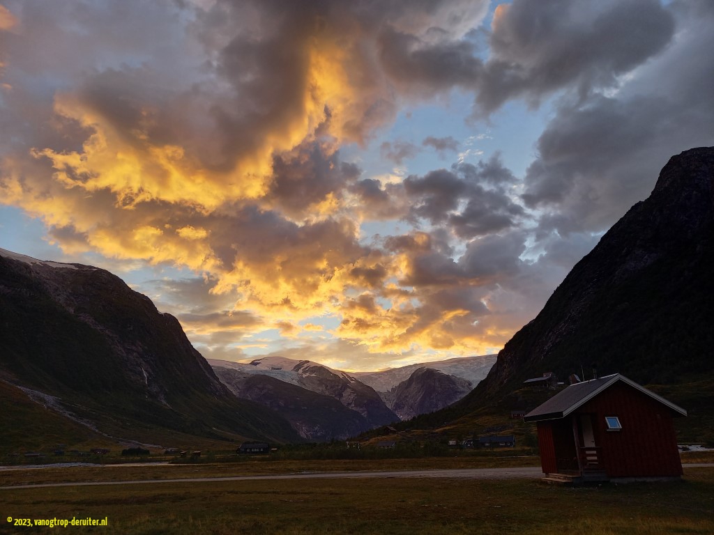 Tungestolen was a truly magical location: a wide valley, 2 glaciers nearby (Langedalen & Austerdalen), sheep and cows grazing freely. And, without realizing it, we were (as the crow flies) some ยฑ25km westward from our overnight location at Astruptunet 5 days ago(!).
