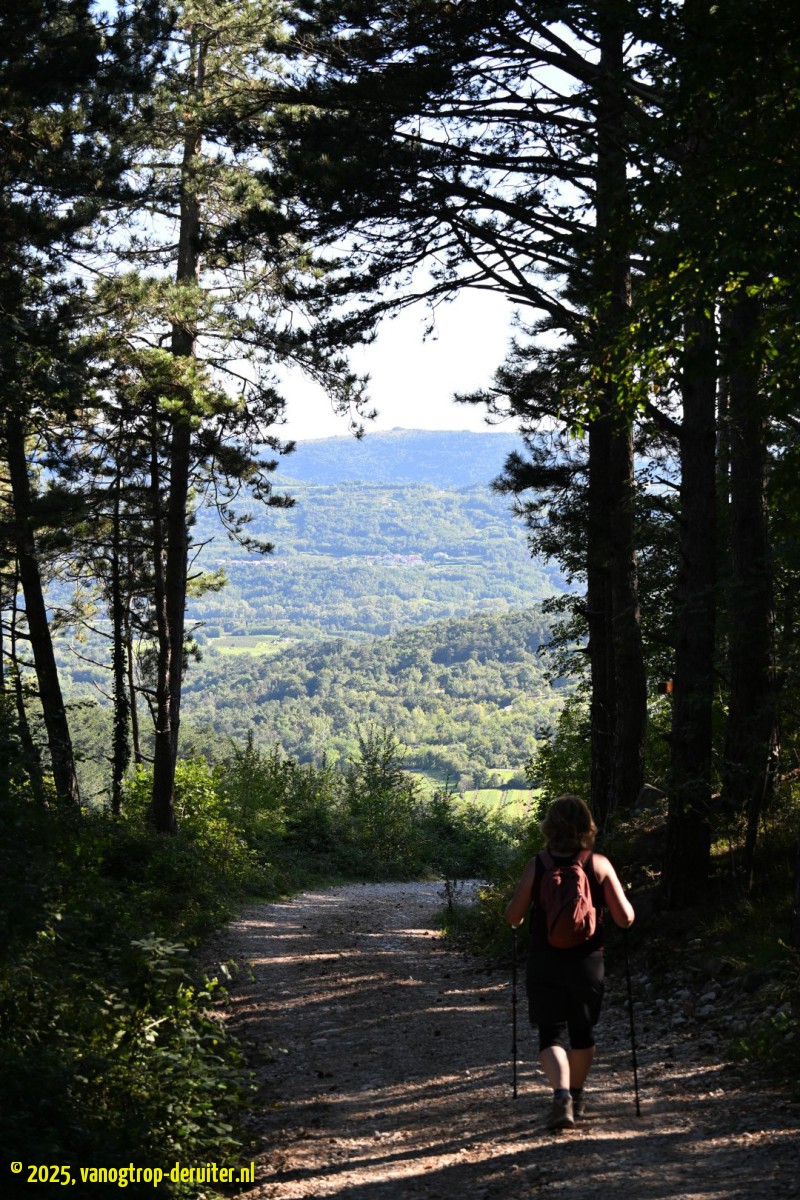 In our search for a campsite we nearly became well and truly stuck in the small village of Malovลกe, a little bit of a nailbiter. We skipped the search and found an alternative overnight stop at Kamp David, where we eventually stayed for 2 nights. We were treated to a fantastic sunset, and the next day (day 6) we did a hike in the hills behind Malovลกe, following the Catholic walk a way up to Sveti Pavel, and visiting an old fortification. We were well aware of our location in the Vipava Valley, one of the important Slovenian wine regions, and in the late afternoon we treated ourselves to a wine-tasting at a local family run winery (Fervin), which was really enjoyable.